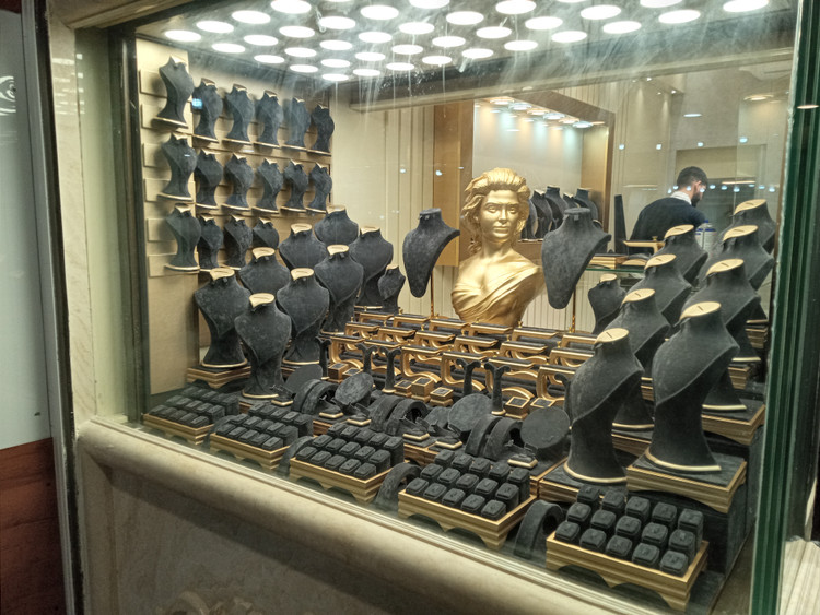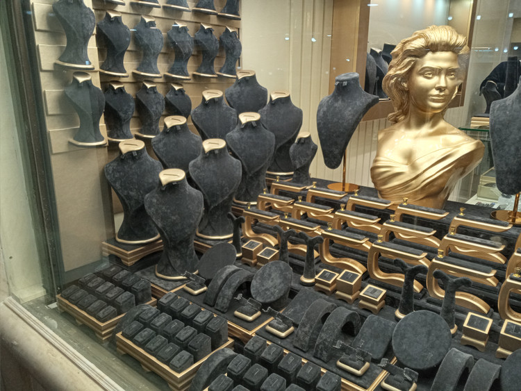 دکورطلافروشی با پارچه مخمل|ویترین طلافروشی اماده شده درگالری